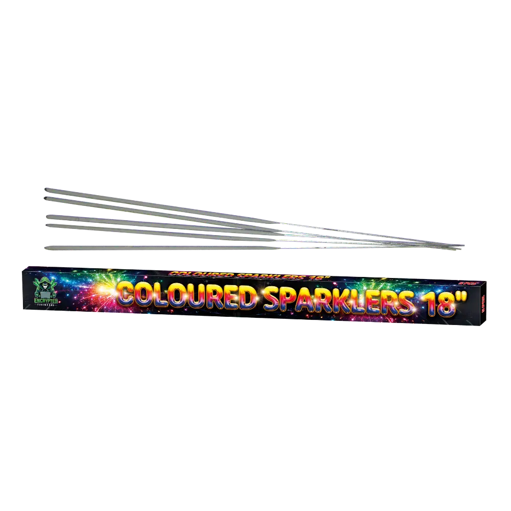 Coloured Sparklers 18 Inch By Encrypted Fireworks produce vibrant multi-colour spark effects with a longer burn duration, making them ideal for celebrations, weddings, parties, and special events. The extended 18-inch length provides increased sparkle time compared to standard sparklers, creating a more noticeable and enjoyable visual experience.