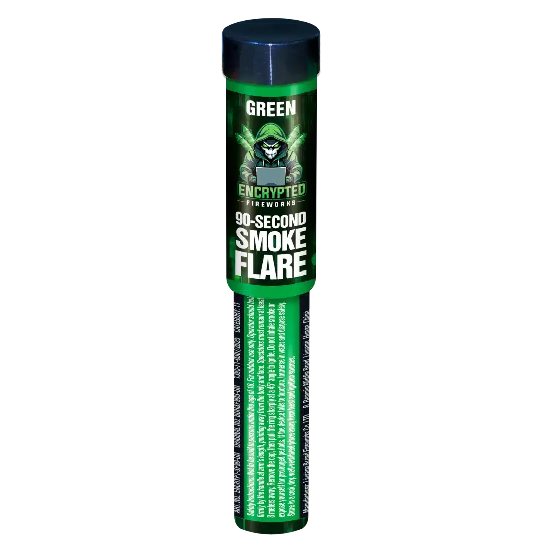 The Green Handheld Smoke Flare 90 Seconds By Encrypted Fireworks produces a vivid green smoke effect with consistent density and strong visibility in outdoor environments. With an approximate ninety-second burn time, this handheld smoke flare is suitable for organised events, sports celebrations, themed displays, filming, and photography.
