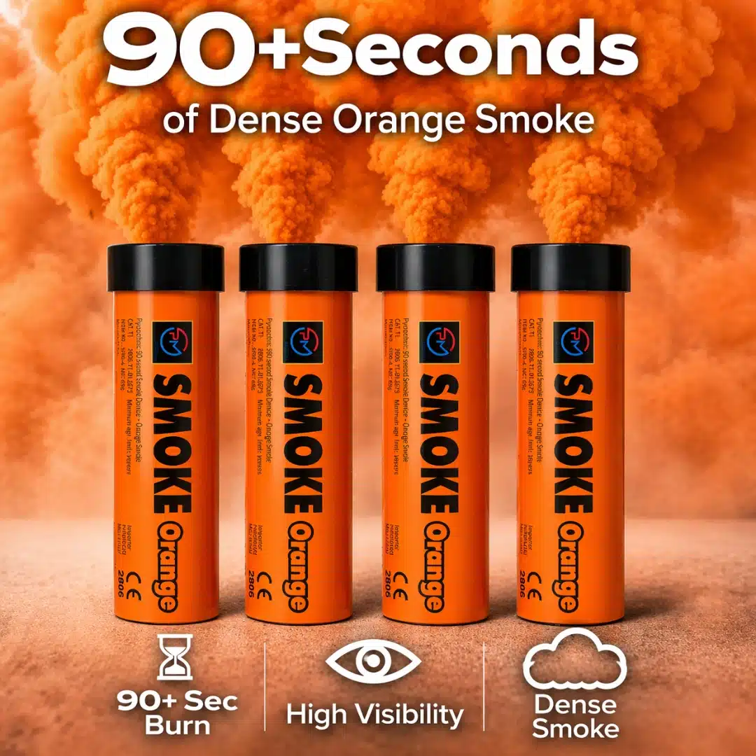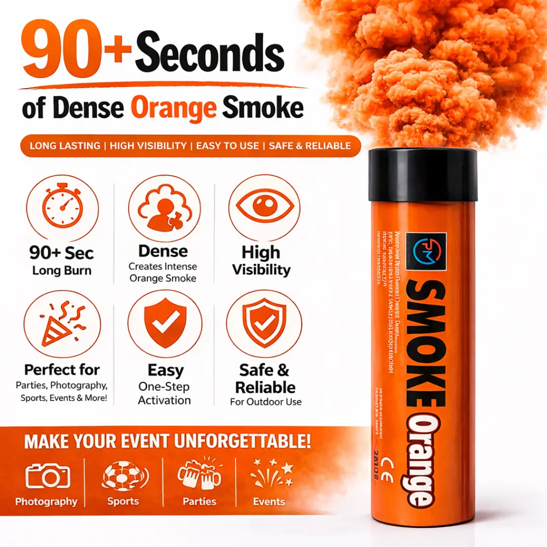 This 90 second orange smoke flare is a versatile and reliable choice for anyone looking to create strong visual effects. The bold orange colour stands out in outdoor settings, making it perfect for celebrations, sports events, and creative projects. With simple activation and consistent smoke output, it offers both convenience and performance.
