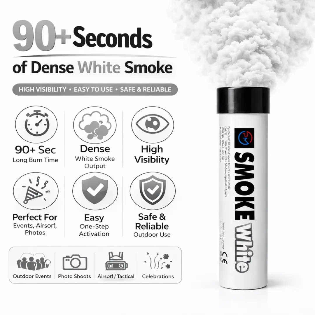 This smoke flare lasts approximately 90 seconds, giving you enough time for photography, filming, and event use.