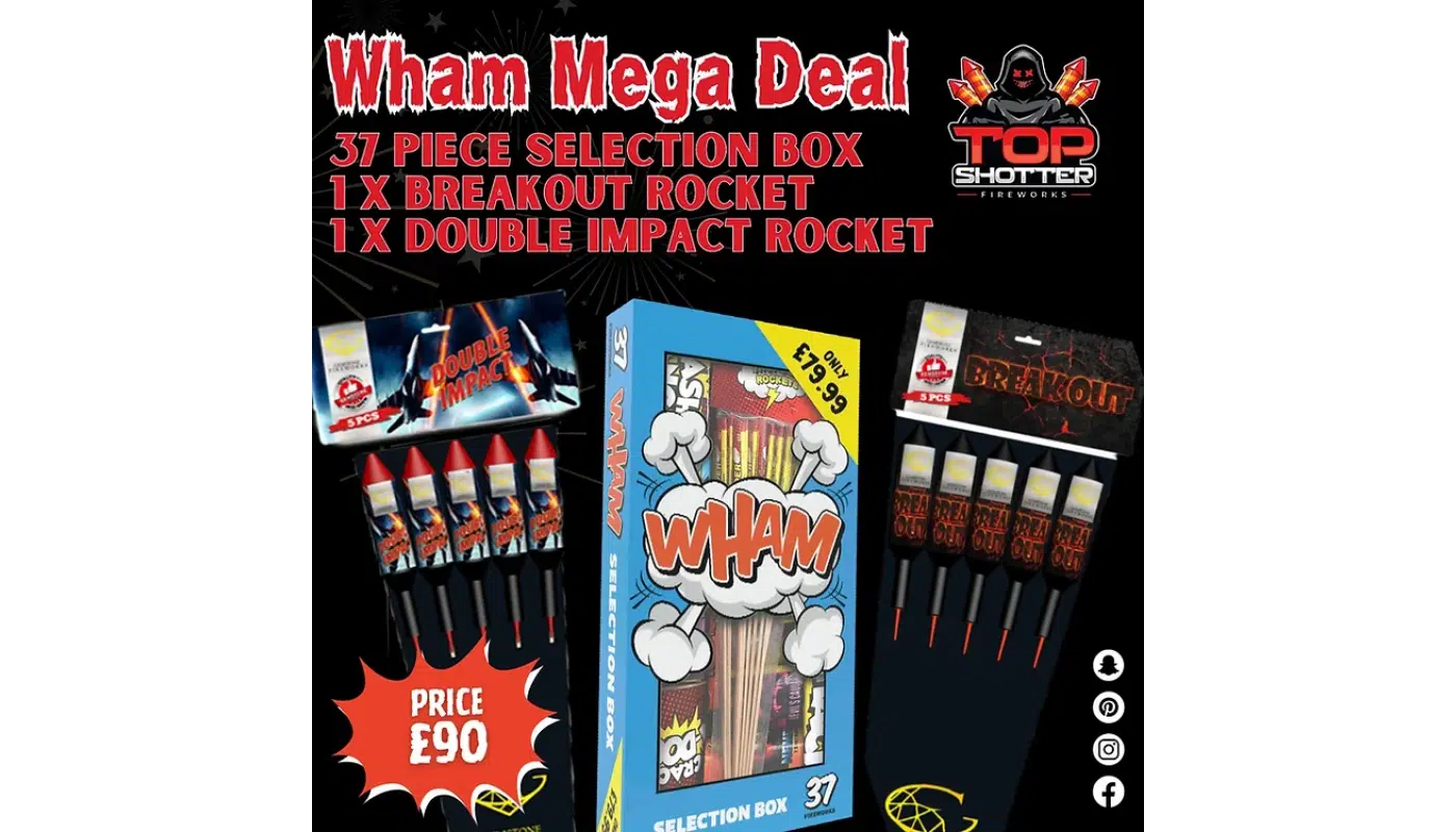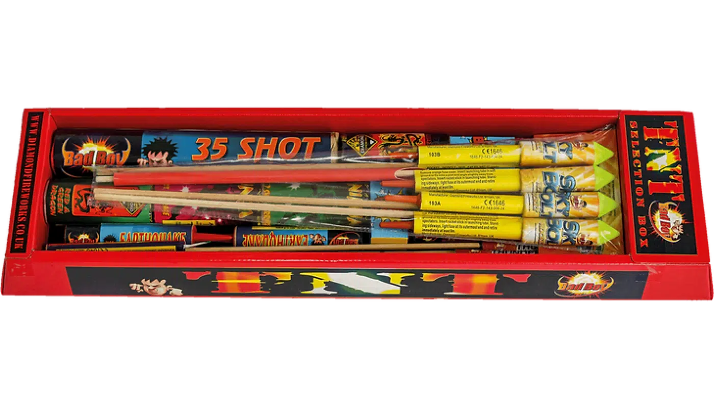 - Features the Kapow Selection Box with 63 pieces of stunning fireworks.